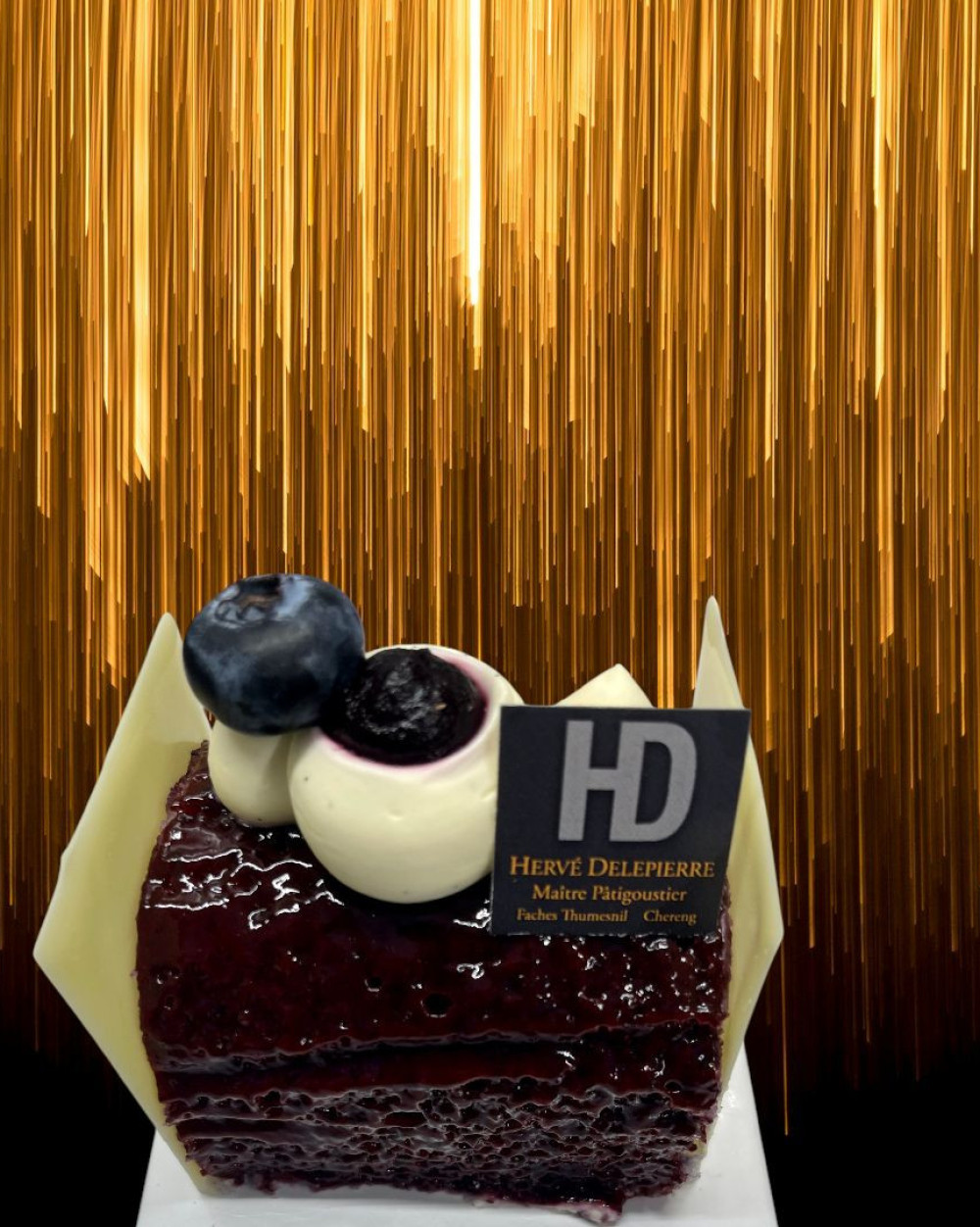 Biscuit roulé myrtilles, confit de myrtilles et ganache montée à la vanille
